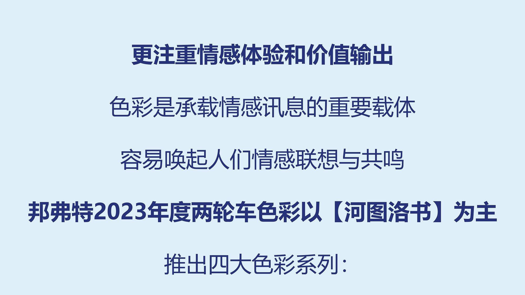 邦(bang)弗特(te)2023年(nian)度(du)兩輪車色(se)綵髮(fa)佈(bu)